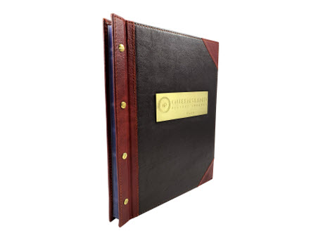 Our custom leather folders add a luxurious feel and are customisable to suit your needs.
