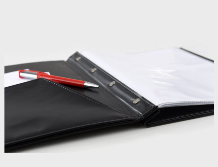 Our range of premium folders are available in several different types of materials including PVC, polypropylene, leather and casemade options.